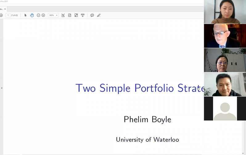 10月26日上午,加拿大威尔弗里德·劳里尔大学教授Phelim Boyle受学院智能决策与风险分析研究所邀请,在ZOOM会议做了题为“Two Simple Portfolio Strategies”的讲座。必赢官网教授徐海燕等教师及部分硕、博研究生线上参加了Phelim Boyle的报告分享,本次学术报告由徐海燕主持。