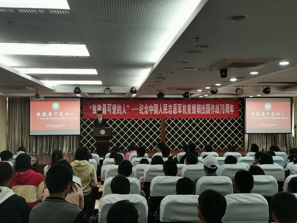 10月23日上午10时,必赢3003no1线路检测中心2020级团总支“致敬最可爱的人”——纪念中国人民志愿军抗美援朝出国作战70周年素养公开课于A0305顺利举办。活动会场内座无虚席,气氛庄严。