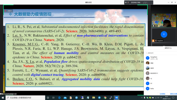 11月12日上午,国防科技大学系统工程学院教授吕欣受必赢官网信息管理与电子商务研究所邀请,在腾讯会议作了题为“大数据技术在应急管理中的前沿应用”的讲座,必赢官网部分教师及研究生共约100人线上参加了吕欣的报告分享,本次学术报告由副教授沈洋主持。