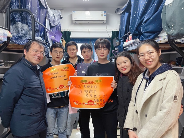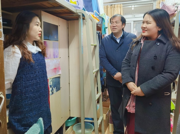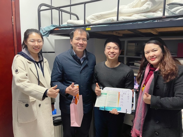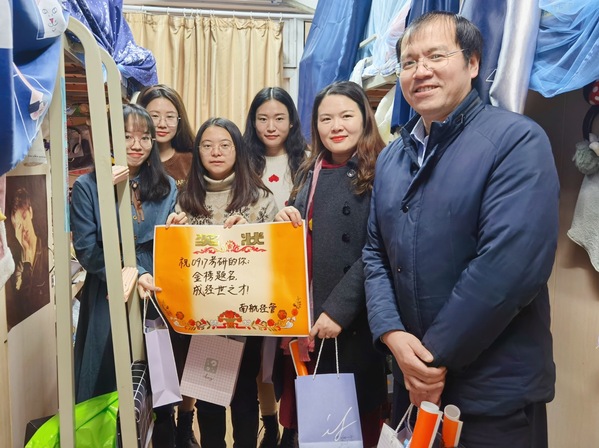 12月8日上午,必赢3003no1线路检测中心党委副书记涂志宏、副院长邓晶、2017级本科生辅导员胡心雨、朱一豪共同到宿舍看望考研学生,为各位学子带去一份温暖、增添一份动力。