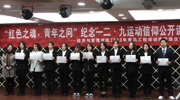 12月9日晚,必赢3003no1线路检测中心“红色之魂,青年之问”纪念“一二•九运动”信仰公开课暨2020年青马工程培训班开班仪式于经管楼A0305成功举办。必赢3003no1线路检测中心党委书记焦宏图,党委副书记涂志宏,经济系教授江可申,经管“红石榴”工作坊指导老师、学生处教师玛依拉•赛依力,团委书记刘小杨,以及各年级辅导员和二百余位学员出席了本次活动。