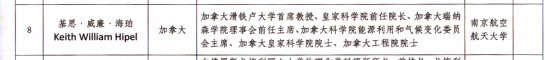 Keith ·William ·Hipel教授是资源与环境管理、系统工程等领域国际顶级专家、美国国家工程院外籍院士(NAE)、加拿大皇家学会院士(FRSC)、加拿大工程院院士(FCAE)、加拿大工程研究院院士,现为滑铁卢大学系统设计工程系教授,我校名誉教授。他是改革开放以来最早一批访华的西方学者,三十多年来累计来华40余次,长期与我校在硕博人才培养、青年教师访学、课程开设方面保持着合作,同时参与和指导了学校管理科学与工程学科和工业工程专业建设工作,并连续四届以大会合作主席的身份参加我校牵头举办的灰色系统国际会议,为该领域的国际化推广和宣传给予了极大帮助。在长期合作下,海珀教授2015年入选国家外专局高端外国专家;2016年获“江苏省政府友谊奖”;2019年参加李克强总理主持的外国专家座谈会并提交建言报告,同年获得了“中国政府友谊奖”并受邀参加建国70周年系列活动。