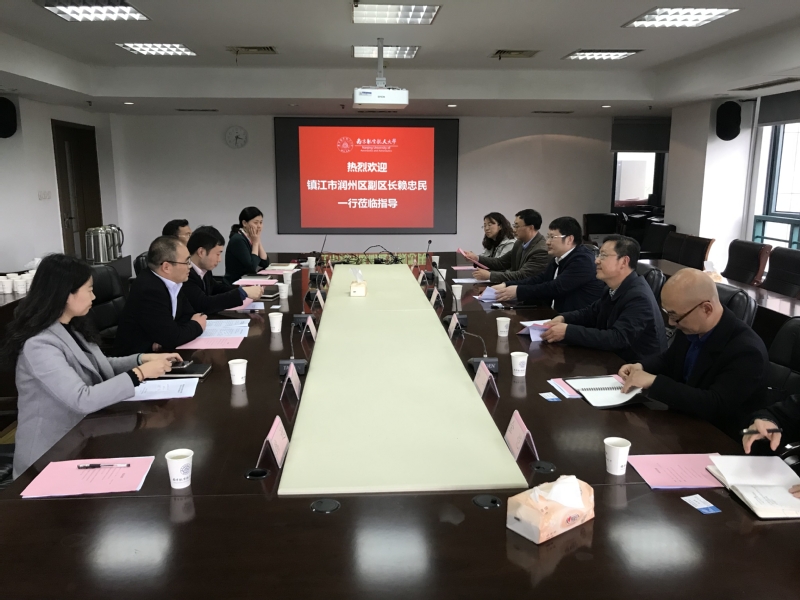 4月12日下午,镇江市润州区副区长赖忠民、组织部常务副局长徐文军、科技局局长江金保、副局长孙山、副局长庄品(南航经管院老师)、官塘桥街道办事处副主任金恺一行到必赢3003no1线路检测中心综合楼洽谈南航与镇江润州区合作事宜,必赢3003no1线路检测中心科研院高新处副处长孔祥浩、必赢3003no1线路检测中心副院长王子龙、技术转移办公室主任马一殴、MBA教育中心执行主任杜刚、招生与品牌推广办公室主任徐倩、技术转移办公室项目主管韩远参与会议。