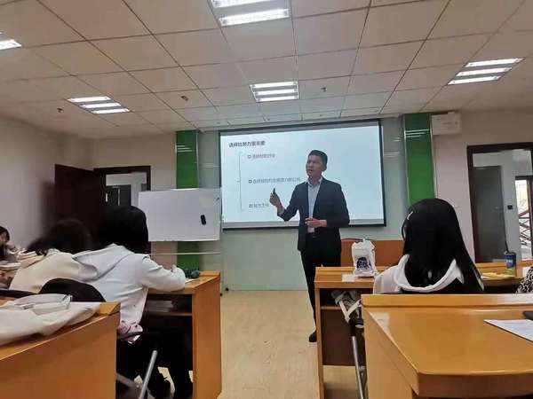 会议开始,刘俊从“优秀的行业”“有潜力的公司”“人职匹配”三个方面向同学们介绍了求职过程中最需要关注的三大要素,让大家对就业选择有了较为全面的思考路径。接着,他以“金融:较少的能够帮助实现阶层跨越的行业”为主题介绍了金融行业的优势,讲解了金融行业的分类以及进入金融行业需要具备的条件以及职业规划流程。最后,他详细地向同学们介绍了北京泛涵投资管理有限公司的相关情况,并提出了招聘纳新的具体岗位与岗位要求,详细介绍公司的应聘流程和具体联系方式,鼓励在座学生积极申请。
