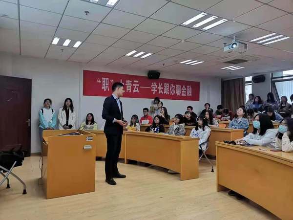 为了帮助同学们了解金融行业的前景及优势,拓宽同学们金融行业就业渠道,4月16日下午,经管学院邀请了北京泛涵投资管理有限公司刘俊开展了主题为“职上青云—学长跟你聊金融”的金融行业就业指导。