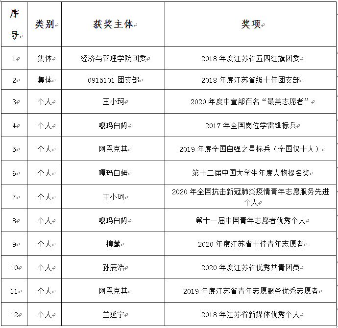 表1:十三五期间学院学生省级以上重要评选获奖及个人表彰情况