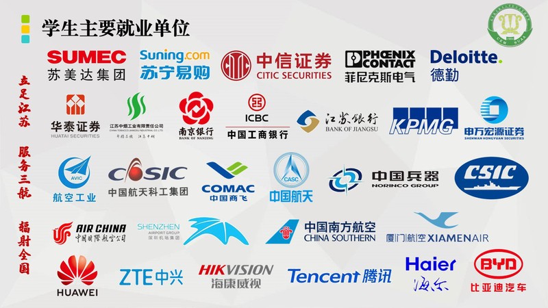 拓展实践基地,多措并举助推实习就业。学院积极开拓企业实习实践基地,为学院相关专业的同学提供和搭建优质的校企实践平台,通过校企导师联合指导,切实提高学生的综合素质。重视国防重点单位及优质企业就业资源,每年院领导带队开展“国防企业面对面”、名企走访等活动,不断提升重点领域、重点企业就业比例。积极探索“军演式”的企业实习新模式,以实际问题为导向,通过分组编队,强化验收考核,增强实习的竞争性与对抗性,每年择优遴选本科生赴成飞、海尔、捷普等公司企业开展实习实践。打造“经赢职场”职业素质训练营,在“名企”、“名家”上下功夫,邀请知名企业、企业家进校与学生近距离交流,帮助学生做好个人定位和职业选择。成立“经致工作坊”“经精有位”“职上青云”等小微平台,围绕学生特点及需求,平均每月一期、每期一个主题,提高就业指导服务工作的质量。积极汲取经管学院丰富的校友资源,搭建起学生与优秀校友的沟通平台,重点打造了“尚德励学英才说”、“筹策济世名家谈”等校友面对面活动品牌。通过拓展实践基地,重视重点单位就业资源,多维度关注,多举措并施,发展校企联合平台,增强学生职业思维,提升学生综合素质,促进优质就业。学生专业特色鲜明,就业市场广泛,积极引导学生树立正确的就业观和择业观,激发毕业生到基层就业、服务社会、投身国防事业的热情,逐步形成了“立足江苏、服务三航、辐射全国”的学生就业格局。