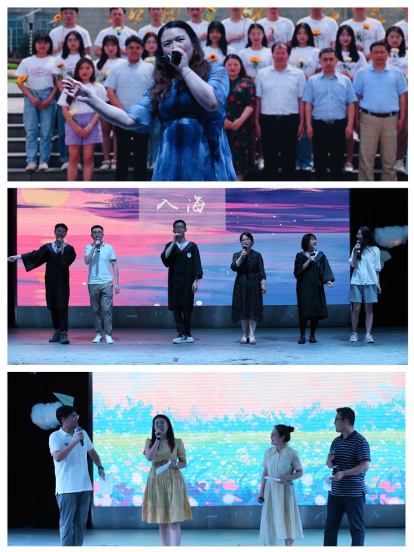 为了给同学们献上送别的祝福,老师们也纷纷登台献唱。毕业班历任辅导员刘小杨、庞依达、胡心雨、朱一豪惊喜登台,一曲《那些花儿》唤起同学们的离别感伤;管工系教师关叶青、工商系教师张丹妮、经济系教师王长波和各系学生代表带来三首师生共唱歌曲串烧,将全场气氛继续推高;涂志宏在同学们的欢呼声中登台演唱歌曲《祝福》,满含深情,表达了对同学们殷切期望与万般不舍。接着,涂志宏为各班班长及团支书颁发了班级校友大使聘书,寄语同学们谨记母校的校风校训,心系南航,不忘师恩,乘风破浪,期盼同学们常回家看看。