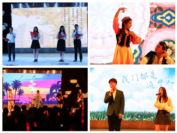 晚会在一曲《summer》中火爆开场,现场的氛围和情绪火力全开,接踵而至的舞蹈、歌曲、说唱、b-box、诗朗诵等节目淋漓尽致的展现了同学们的独特个性和青春热情。