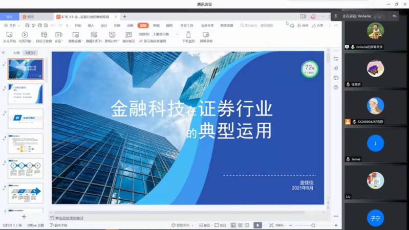 6月16日晚上,华创证券产业金融部执行总经理金佳佳应必赢3003no1线路检测中心信息管理与电子商务研究所的邀请,通过腾讯会议作了“证券行业的金融科技问题分析”报告,必赢官网教授米传民以及诸多学生聆听了此次报告,本次报告由米传民主持。