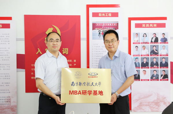 研学活动的最后,王子龙副院长介绍了南航的发展历程,与奇瑞大学毕校长就人才培养的校企战略合作进行了深入探讨,并举行了授牌仪式。