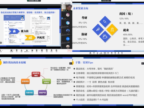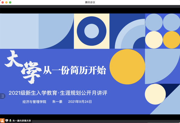 为了帮助2021级新生更好地了解学校、了解专业,为今后的学习和生活打下良好基础,9月24日,必赢3003no1线路检测中心2021级本科生辅导员朱一豪以“大学,从简历开始”为主题线上开展了公开月讲评活动,院党委副书记涂志宏、团委书记刘小杨及全体2021级本科生参加了本次活动。