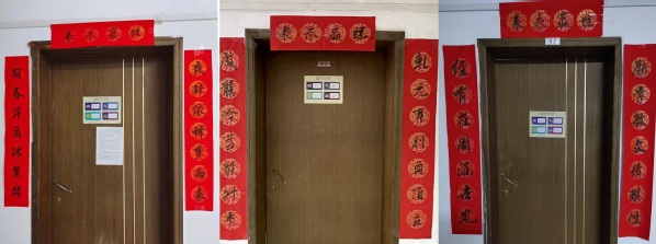 经管学院以大家庭之名,拥抱来自五湖四海的每一位新生,送上专属惊喜。“亦师亦友亦比邻”,每间宿舍都与一名“专属导师”结对子,邀请专业导师老师融入学生生活,为同学们答疑解惑,帮助同学们了解专业、确立目标,尽快走出陌生与迷茫。每间宿舍都张贴着带有成员名字的“专属对联”,用诗情画意迎接崭新面孔。