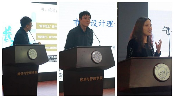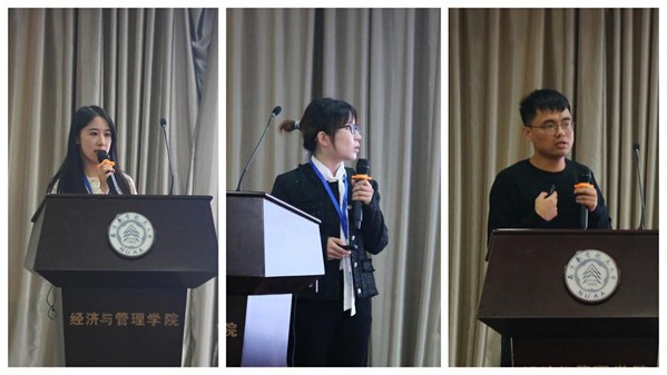 下半场的优秀研究生大会报告由南京林业大学经济管理学院张晖教授主持,来自南京理工大学、中国石油大学(华东)和必赢3003no1线路检测中心的三位博士生耿倩洁、杨子坤、杨光磊分别作题为“Forecasting the volatility of the oil futures basis: univariate models versus multivariate models”、“Can renewable energy investment reduce carbon dioxide emission? Evidence from scale and structure”和“可再生能源技术创新和低碳技术创新对中国可持续能源转型的影响研究”的学术报告,并与现场师生进行了广泛交流。