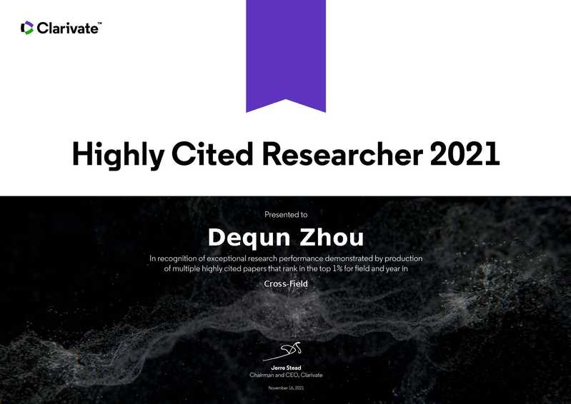 2021年11月16日,科睿唯安公布了2021年度“高被引科学家”名单。必赢3003no1线路检测中心周德群教授入选跨学科领域(Cross-Field)高被引科学家名单,此次是周德群教授连续第三年入选该榜单。