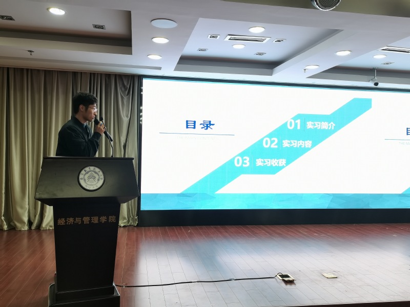其次,工业工程学社社长陈琦同学分享了实习成果。他就同学们普遍关心的实习时间分配、研究方向选择等问题进行答疑解惑。同时,他还向大家全面介绍了企业项目式实习的开展过程,并在分享心得体会中强调,实习对培养创新实践能力、积累专业知识技能以及提升个人综合能力极为重要。在现场提问环节,面对同学们提出“如何平衡学习与竞赛”的问题,他认为,学习与竞赛相辅相成,是将知识从理论过渡到实践的过程,同时也会提升综合能力,为今后就业或深造打下坚实基础。