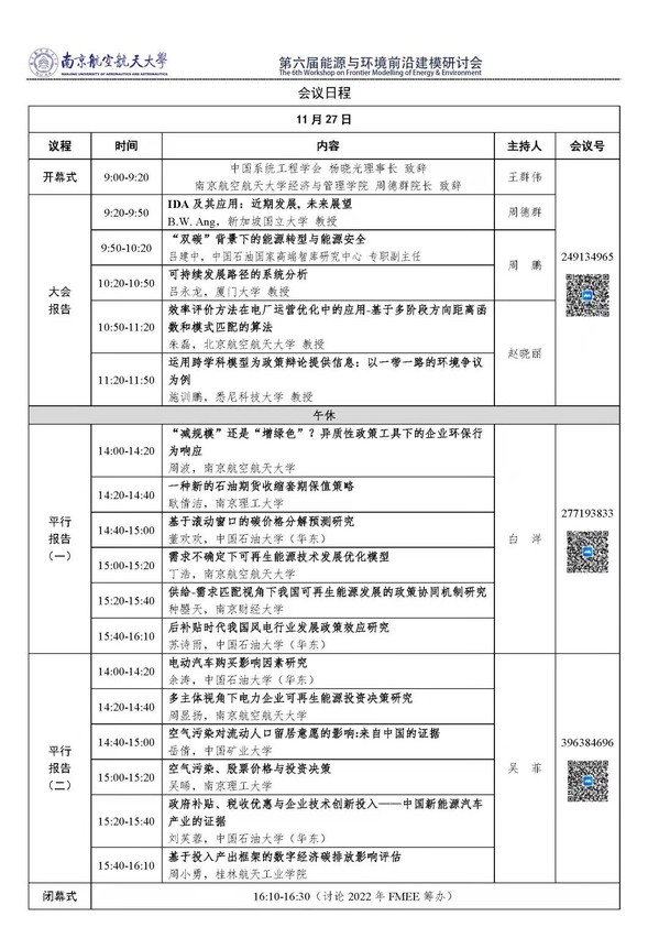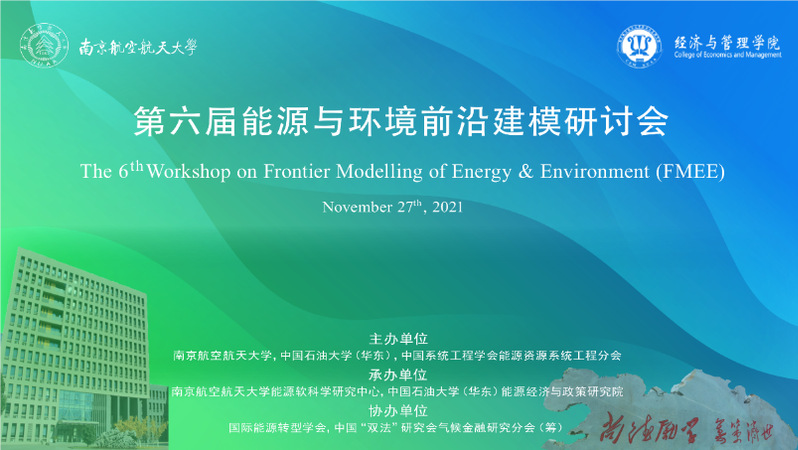 11月27日,第六届能源与环境前沿建模(The 6th Workshop on Frontier Modelling of Energy & Environment, FMEE)研讨会在必赢官网成功举办。本次论坛由必赢3003no1线路检测中心、中国石油大学(华东)和中国系统工程学会能源资源系统工程分会共同主办、必赢3003no1线路检测中心能源软科学研究中心和中国石油大学(华东)能源经济与政策研究院承办,国际能源转型学会、中国优选法统筹法与经济数学研究会气候金融分会(筹)协办。会议得到《中国管理科学》、《环境经济研究》和《中国石油大学学报(社科版)》的支持。