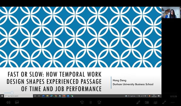 4月14日,英国杜伦大学教授邓红应必赢3003no1线路检测中心人力资源管理研究所和江苏省人力资源发展研究基地的邀请,在线上为必赢官网师生作了题为“Fast or Slow: How Temporal Work Design Shapes Experienced Passage of Time and Job Performance”的精彩学术报告。本次报告由教授胡恩华主持,相关教师、博士生和硕士生参加了此次学术报告活动。