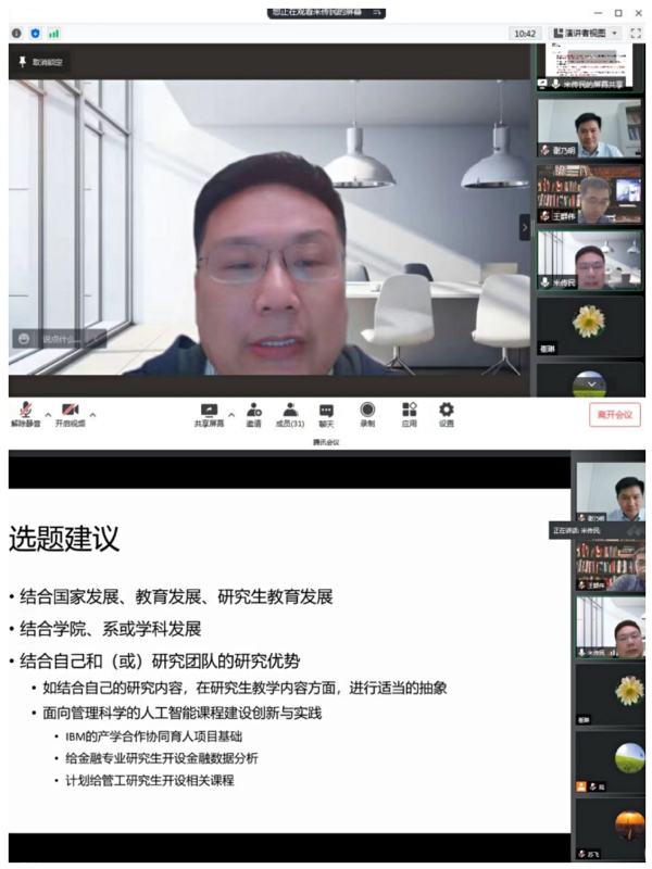 5月6日,必赢3003no1线路检测中心开展了“研究生教育教学高质量发展研讨月”线上活动,邀请人事处副处长王群伟教授、管理科学与工程系主任米传民教授作为主讲人,分享了教学改革研究项目申报与完成的相关经验。学院副院长谢乃明教授、近40位青年教师代表及教学办相关人员共同参与了此次活动。