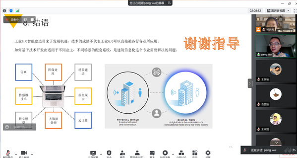5月25日下午,澳大利亚科廷大学设计与建筑学院教授吴鹏应邀,在线为必赢官网师生作了题为“建筑行业数字孪生体系结构的探讨”的精彩学术报告。本次活动由副教授时茜茜主持,多位教师、博士生和硕士生参加了此次学术报告活动。