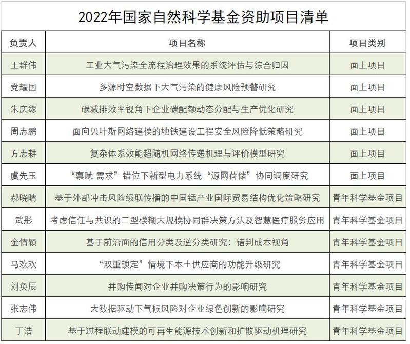 近期,国家自然科学基金委员会、全国哲学社会科学规划办公室陆续公布了2022年度国家自科基金与国家社科基金的资助名单,学院15项项目获得立项资助。其中,国家自科基金项目获批13项(面上项目6项、青年项目7项),国家社科基金项目获批2项一般项目。