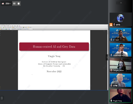 受新冠肺炎疫情的持续影响,灰色系统国际论坛以线上会议的形式举行。邀请了来自英国德蒙福特大学的Yingjie Yang教授、英国得蒙福德大学的Arjab Singh Khuman教授、法国贝尔蒙特大学Yicha Zhang副教授、罗马尼亚布加勒斯特经济大学的Camelia Delcea副教授以及在宁外籍专家Saad Ahmed Javed和Ehsan Javanmardi等6位专家。各位专家分别针对动态灰色关联分析、灰色系统理论在经济和社会科学中的应用、以人为本的人工智能和灰色数据等主题进行了精彩报告。