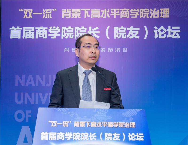 校长单忠德院士作了题为“以一流商学院建设赋能中国特色、世界一流大学建设”的讲话。他指出,建设世界一流大学需要一流商学院支撑,要坚持“四个面向”,强化交叉融合。商学院是培养“既懂技术、又懂管理”复合型人才,推动教育、科技、产业等要素融合的重要阵地,要始终面向国家重大战略需求和区域经济发展需要,不断优化升级现有学科体系,完善学科交叉融合机制,持续深化多领域协同,加强重大创新平台和基地建设,更好赋能高水平人才培养和高水平科技自立自强。建设世界一流大学需要一流新文科赋能,要坚持特色发展,塑造学科优势。文科是高水平研究型大学建设的重要基础,是建设世界一流大学的重要组成部分。学院要进一步强化学科特色与优势,持续打造一批特色化研究方向、研究团队和研究平台,加快建设并发挥高端智库的战略咨询作用,不断提升精品文科对“双一流”建设和国家重大工程的支撑力和贡献度。建设世界一流大学需要新动能助力,要坚持开放办学,促进融通发展。学院要在成就校友、凝聚校友、服务校友方面发挥更大的作用,要与校友携手联动、共创永续发展。要立足新发展阶段,完整准确全面贯彻新发展理念,服务构建新发展格局,坚持“开放办学、开放创新、开放合作、开放共赢”,更好地有机嵌入到区域重大发展战略和产业转型升级全局,发挥好包括校友在内的各类资源,积极探索更多产教深度融合的新机制新模式,努力为构建现代化产业体系提供坚实的人才和智力支撑。