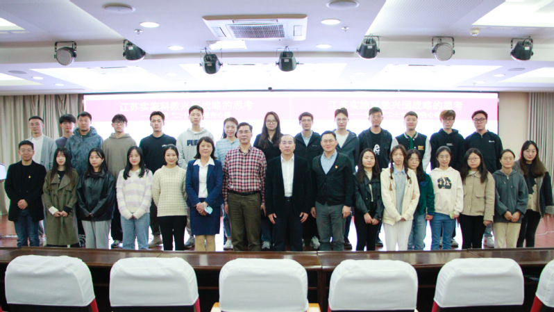 随后,吴宏为学院师生作题为《江苏实施科教兴国战略的思考》主旨报告,深入解读阐释党的二十大报告关于“实施科教兴国,强化现代化建设人才支撑”内容,以“三个主题”、“三个第一”、“三个战略”、“四个新”凝练概括,基于江苏发展历程,从“科技创新是江苏经济社会发展的内在要求”“江苏省科教兴省的主要内容”“影响科技创新的基础问题和未来实施科教兴国的方向”等四个方面进行交流分享。