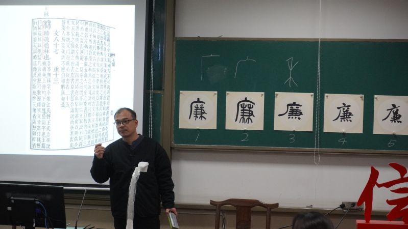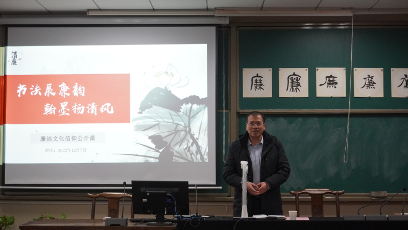 12月7日上午,由必赢3003no1线路检测中心团委、艺术学院团委共同承办的“书法展廉韵,翰墨扬清风”信仰公开课在艺术学院砚湖书院举行。本次公开课由南京书房创始人、江东书画院院长张星星担任授课嘉宾,校财务处处长张丕宏,必赢3003no1线路检测中心党委书记苏州,艺术学院党委书记张钟勤,必赢3003no1线路检测中心党委副书记胡苹、副院长邓晶,艺术学院党委副书记王宇宁、副院长马道全,两学院专兼职辅导员,学生会、研究生会主席团以及学生党支部纪检委员等50余名师生共同参加了本次活动。