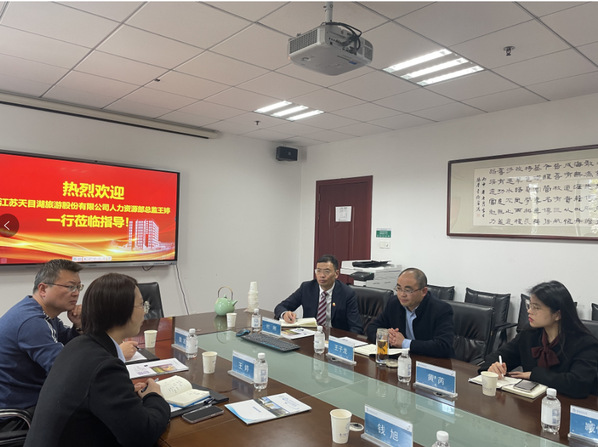 3月2日上午,江苏天目湖旅游股份有限公司人力资源部总监王婷、人力资源部培训主管钱旭到访必赢官网开展合作交流,校保卫处副处长魏波,必赢3003no1线路检测中心副院长王子龙,MBA教育中心执行主任杜刚等参加了座谈交流。