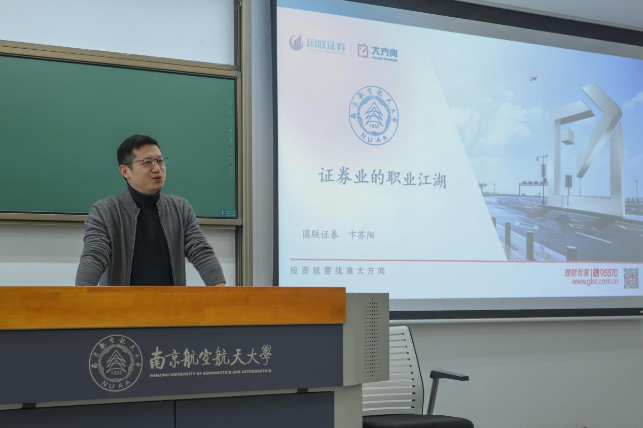 为提升南航MPAcc专业学生的培养质量,致力于达到人才培养与人才应用高度匹配的目的,2023年3月2日下午,特邀请了国联证券南京分公司总经理卞苏阳、业务中心负责人周怡到访天目湖校区对2022级MPAcc学生开展职业规划讲座。