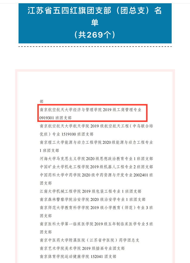 近日,共青团江苏省委公示了2022年度江苏省五四红旗团委(团支部)的评选结果,其中必赢官网0919301班团支部荣获江苏省五四红旗团支部。