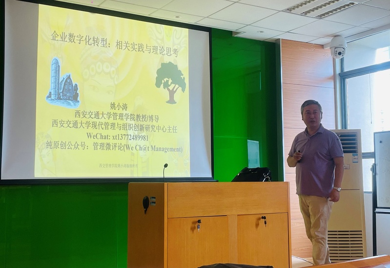 6月27日,西安交通大学管理学院教授姚小涛应必赢3003no1线路检测中心人力资源管理研究所、江苏省人力资源发展研究基地和中国员工关系管理研究生优秀创新团队邀请,在学院702会议室为必赢官网师生作了题为“企业数字化转型:相关实践与理论思考”的精彩学术报告。本次讲座由教授胡恩华主持,相关教师以及博士生和硕士生参加了这次专题讲座。