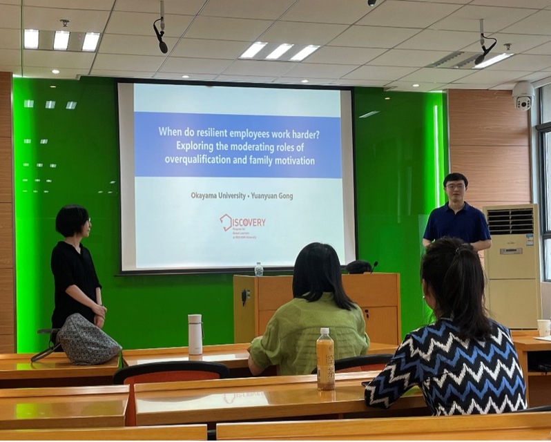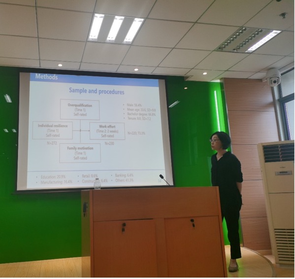 7月18日,必赢3003no1线路检测中心人力资源管理研究所邀请到日本冈山大学副教授龚元元在学院702会议室为必赢官网师生作了题为“When do resilient employees work harder? Exploring the moderating roles of overqualification and family motivation”的精彩学术报告。本次报告由青年教师刘奂辰主持,胡恩华、李媛,蔡静雯等教师以及博士生和硕士生参加了此次学术报告活动。
