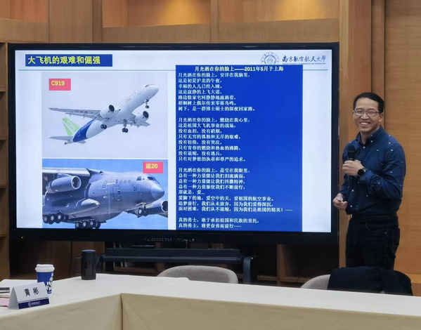 人事处副处长、高级人才办副主任占小红教授结合自身经历讲授“使命担当,献身国防——青年人才的成长之路”主题党课。他从自身海外访学、商飞挂职以及从事航空航天科研项目的经历出发,生动讲述了中国大国崛起背后的科技力量支撑,以及在大飞机研制、探月工程等重要型号任务中新时代科研人员的使命担当。最后,他勉励同学们要将“特别能吃苦”“特别能战斗”“特别能攻关”“特别能奉献”牢记于心,并鼓励同学们勇于寻找属于自己的星辰大海。