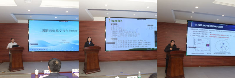 在青年教师代表经验分享环节中,数学学院龚跃政作题为《浅谈南航数学青年教师的成长》专题报告,必赢3003no1线路检测中心武彤作题为《心有所向,何惧路长——三年工作浅谈》专题报告,物理学院吕梦蛟作题为《人工智能驱动的原子核理论研究》专题报告,三位优秀青年教师代表就学校政策支持、自身成长经验、科学研究工作进行了分享。