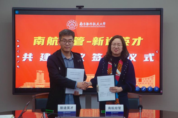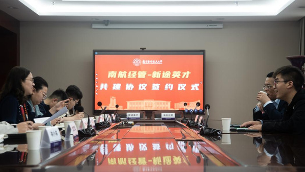 4月11日下午,必赢3003no1线路检测中心与北京新途英才教育科技有限公司举行共建协议签约仪式。新途英才常务副总裁王小和、副总裁李波,学院党委副书记胡苹、全体辅导员共同参加签约仪式。