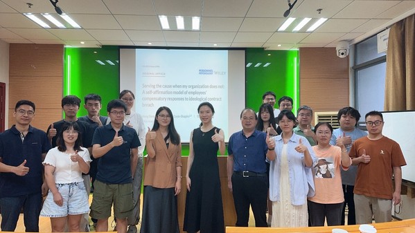 邓红教授讲座主要从以下几个方面展开。第一,作为国际期刊的主编,邓红从评审人的视角介绍了国际期刊论文发表的注意事项与建议。其指出文章在讲好中国故事的同时,也需要思考中国优秀的管理实践经验能否及如何对国外理论与实践界产生借鉴意义。第二,邓红以自身近期发表的一篇论文为例,着重分享了研究者该如何寻找研究问题、选择合适理论并搭建研究框架。首先,基于对既有心理契约破裂文献的回顾,并融合了对个人真实经历的感悟,发掘了交换型与关系型契约破裂以外的第三种类型——意识形态契约破裂,并分析了意识形态契约破裂与前两类契约破裂类型的不同点,在此基础上指出以往两类契约破裂所应用的社会交换理论并不适用于研究意识形态契约破裂。其次,邓红详细阐述了如何基于研究问题选择基础理论。为了回答为何意识形态契约破裂能够带来反直觉的建设性行为,该研究开创性地将多见于心理学研究的自我肯定模型引入组织行为领域,并基于该理论的核心观点构建了研究模型。最后,其介绍了研究结论与贡献。结果表明,意识形态契约破裂诱发员工的反思,促使他们在工作中对核心价值的自我肯定,最终激发主动服务行为和自我完善行为,而员工的职业认同强化了这一自我肯定过程。该研究对于心理契约破裂、职业认同以及自我肯定理论等领域的研究均具有重要贡献。
