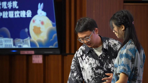 中秋晚会特别设置了惊喜环节,邀请同学们在贺卡上写下对亲友与同学的祝福,营造了“人间至味是团圆”的温馨氛围,新文科创新培优班的沈莹石同学写到:“转眼独自在南航的校园里生活了半月有余,也度过了第一个离开家乡的中秋,虽与亲人相隔两地,也能共赏同一轮皓月,思念不止,愿我们都能在这绵绵的秋意里收获满满的幸福。”