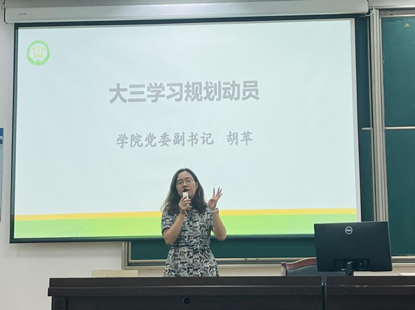 最后,学院党委副书记胡苹作总结。她从2022级学生入学以来的点滴,引导同学们积极思考学习的方向与意义,并提出三点希望:一是坚定学术诚信、遵守考试纪律、扎实推进学业进步;二是尽早确立目标,做好生涯规划,鼓励继续升学深造;三是抓紧一分一秒,维持良好心态,不负青春不负韶华。