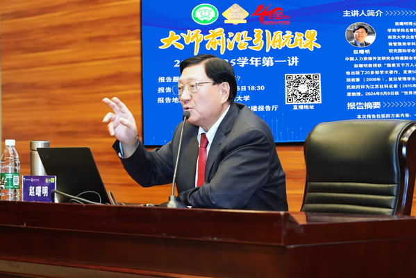 为积极探索高校人才培养模式改革,献礼南航经管学院建院40周年,在前期精心策划组织下,2024年10月26日晚,备受瞩目的“大师前沿引航课”在将军路校区一号楼四楼报告厅正式拉开帷幕。第一讲邀请到江苏社科名家,南京大学人文社会科学资深教授,商学院名誉院长、行知书院院长赵曙明教授,作题为《如何管理自己》的精彩报告。必赢3003no1线路检测中心2024级MBA/MEM/MPAcc学生、2023级和2024级新文科创新培优班学生以及部分参加校本培训的老师,共计400余人参加,报告内容在MBA教育中心视频号同步直播。必赢3003no1线路检测中心党委书记苏州主持报告会。