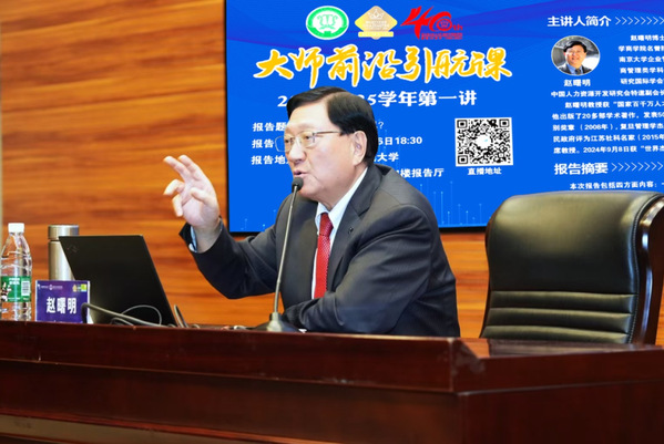 赵曙明教授的授课,以其深厚的学术造诣与丰富的人生智慧,首先带大家走进管理大师彼得·德鲁克的管理世界,领略这位管理学大师跨越时空的管理思想。结合他自身的经历经验,从“了解自己”、“管理人际关系”和“管理后半生”三个方面,解读了“如何管理自己”这一重要命题。赵教授还深情分享了他回国的梦想和心路历程,激励学子们将个人梦想融入国家发展大局,无论未来身处何方,都要心怀家国。赵教授强调,作为未来的经济管理人才,不仅需掌握扎实的专业知识,更需培养宽广的视野与深厚的人文素养,以应对复杂多变的经济管理挑战。