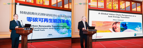 3日上午的大会主旨报告由必赢3003no1线路检测中心副院长查冬兰主持,中国社会科学院学部委员潘家华和英国社会科学院院士、荷兰格罗宁根大学生态经济学家Klaus Hubacek就“全球追求碳中和:合作与创新”这一主题分别作报告。潘家华的报告“转轨脱离化石燃料的经济社会系统性变革——零碳可再生能源革命”阐述了风光可再生能源的发展困境以及潜在优势。Klaus Hubacek的报告“A Global Value Chain Perspective on a Just Energy Transition”探讨了国家内部和国家之间在能源转型上责任差异和能源转型中的公平性问题。