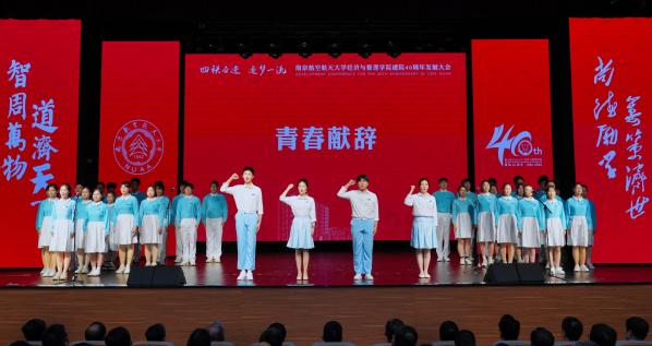 40名学生代表登台献词。“尚德励学 信念如灯”“筹策济世 初心如炬”“创建一流,逐梦有我”“伟大征程,复兴有我”青年许下的铮铮誓言响彻全场。经管学子将勇担新时代重任,让青春为中国式现代化挺膺担当。