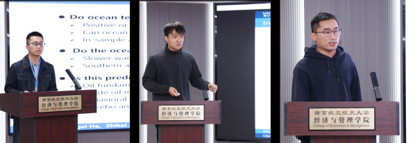 下半场的优秀研究生大会报告由必赢3003no1线路检测中心经济系主任王长波副教授主持,来自南京理工大学的何孟喜博士、北京航空航天大学的闫禧龙博士和必赢3003no1线路检测中心的李振冉博士分别作题为“Forecasting crude oil prices with global ocean temperatures”、“The expansion of carbon border adjustment under the Paris framework: alternative designs and efficiency-equity trade-offs”和“环境规制政策的复杂性影响:以劳动力的多维度再配置为例”的学术报告,并与现场师生进行了充分交流。