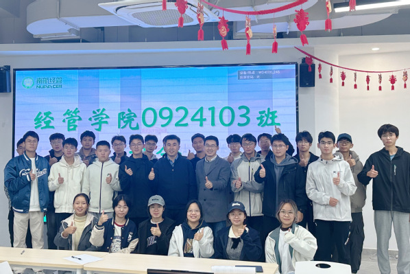 最后,潘顺荣总结发言中提到,作为天目湖校区对接领导干部。非常欢迎大家来到美丽的溧阳开启大学生活,溧阳是一个融合了古老历史、现代气息和自然美景的独特之地,这里的特色乡村有着丰富的文化资源、红色教育资源、农旅合作资源等等,希望同学们发挥经管学子的学科专长,为校地共建注入青春力量与经管智慧。
