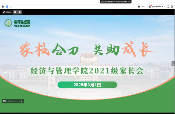 胡苹以考研学生初试成绩为切入口,重点分析了当前经管学生面临的升学与就业挑战。针对部分学生存在预期过高、自我设限或躺平的现象,用典型学生案例呼吁家长朋友们引导孩子树立正确观念,理性调整预期,抓住升学与就业机会。胡苹指出,学校的三航特色与红色基因,经管学院的商科优势、国际视野,都是助力学生发展的良好平台。前期,学院已积极谋划,大力推进了第二学士学位点的开设、提供科研助理的平台,并与新加坡管理大学、香港理工大学等洽谈硕士合作项目,多路径地为毕业生谋划了发展方向。家长们应认清形势、积极行动,引导孩子以更科学的态度应对人生关键阶段,协同学院共同发力,高质量成就每一个学生。