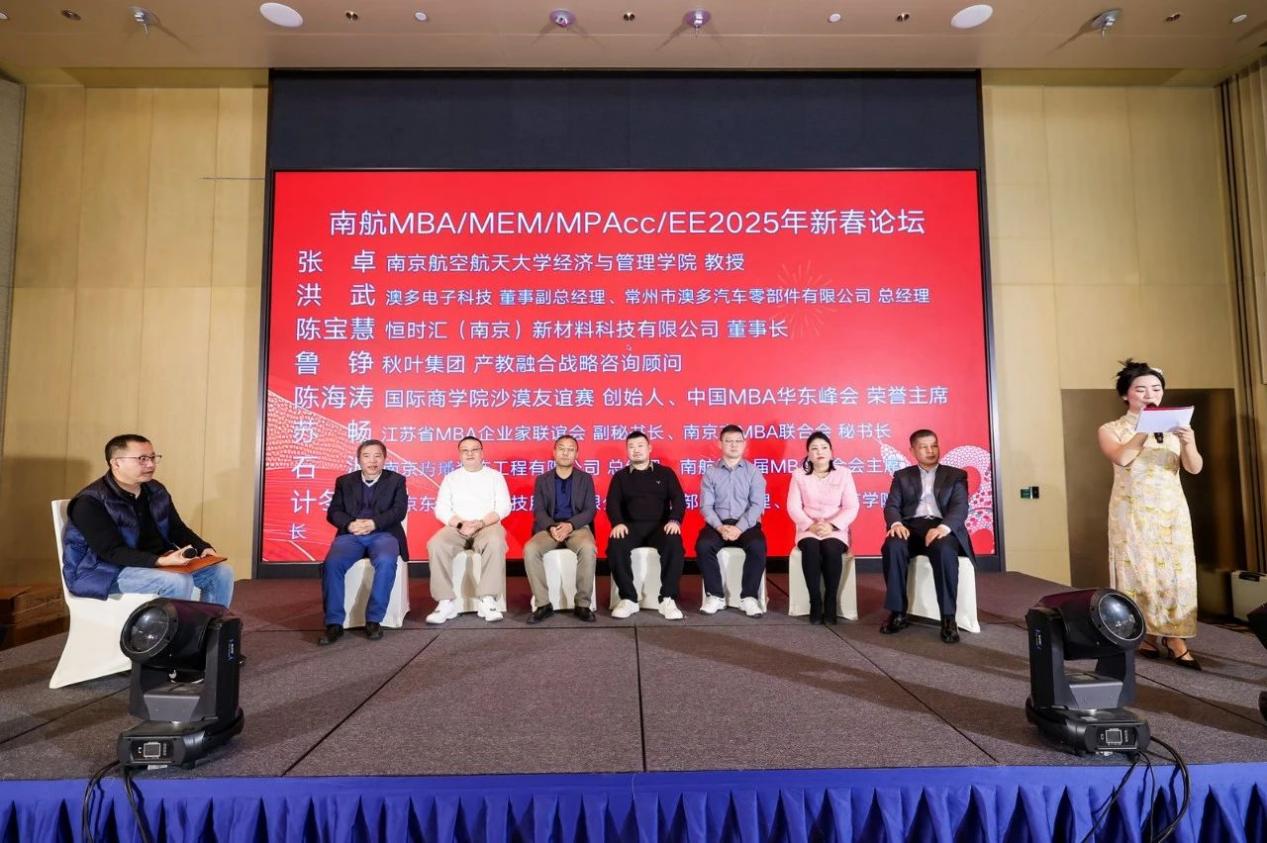 2025年1月11日,必赢3003no1线路检测中心MBA/MEM/MPAcc/EE2025年新春论坛在牛首山希尔顿大酒店成功举办。本次活动由必赢3003no1线路检测中心MBA教育中心主办,南航第十三届MBA/MEM/MPAcc联合会承办。 此次新春论坛,群贤毕至。必赢3003no1线路检测中心院长王群伟、副院长周志鹏,南航教务处副处长邓晶,经济与管理张卓教授,MBA教育中心执行主任杜刚、副主任张晓恒以及众多优秀教师,他们欣然赴会。南京慧和自动化技术有限公司总经理丛伟、如日创投创始合伙人雷典、秋叶集团产教融合战略咨询顾问鲁铮、南航MBA历届联合会主席、各兄弟院校MBA联合会主席或代表悉数出席。 本次论坛得到苏州高田精密技术有限公司、恒时汇(南京)新材料科技有限公司、国际商学院沙漠友谊赛组委会、南京开掼文化有限公司、南京云龙酒业、南京望园文旅有限公司、河海大学MBA联合会等单位的大力支持。