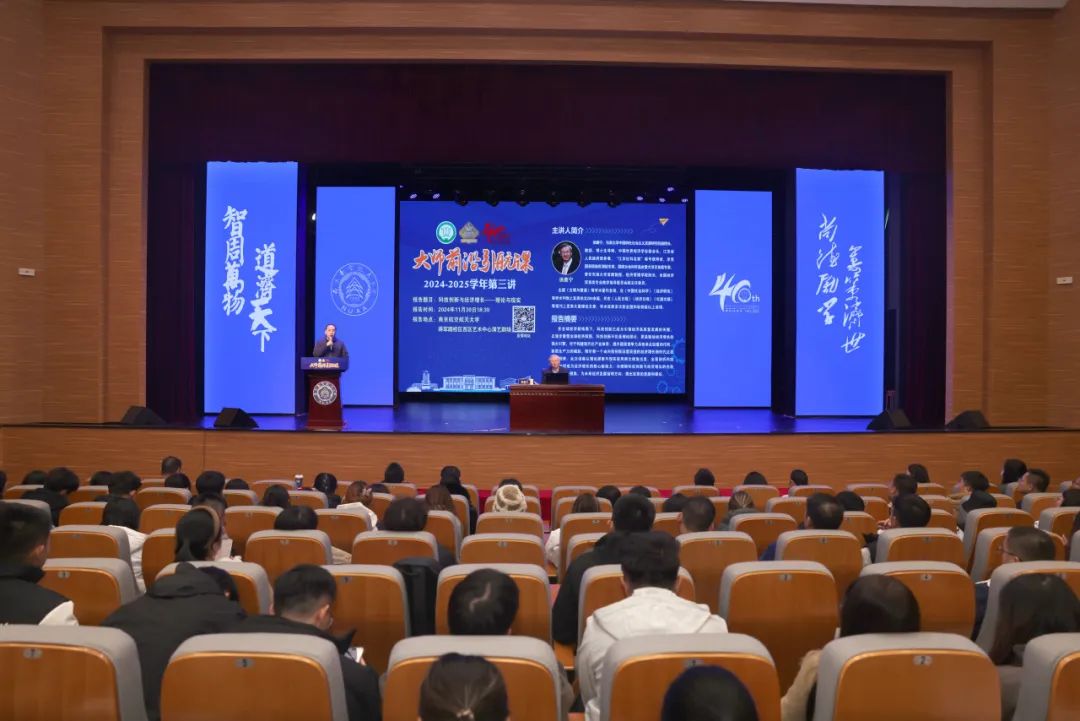 2024年11月30日晚,“大师前沿引航课”第三讲在必赢3003no1线路检测中心将军路校区艺术中心小剧场隆重举行。本期邀请到中国世界经济学会副会长,江苏省人民政府原参事,“江苏社科名家”称号获得者,东南大学中国特色社会主义发展研究院副院长徐康宁教授,授课题目为《科技创新与经济增长:理论与现实》。必赢3003no1线路检测中心500余名师生参加,报告内容在学院视频号同步直播。必赢3003no1线路检测中心党委书记苏州主持报告会。
