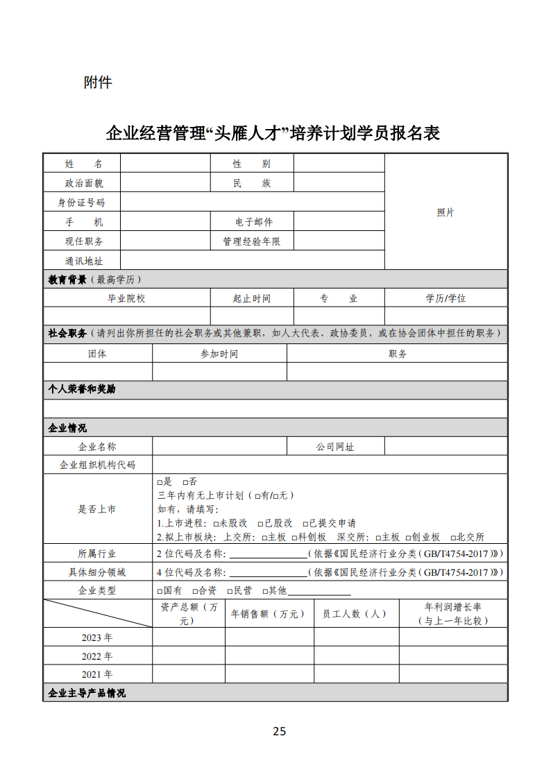 企业经营管理“头雁人才”培养计划学员报名表.docx